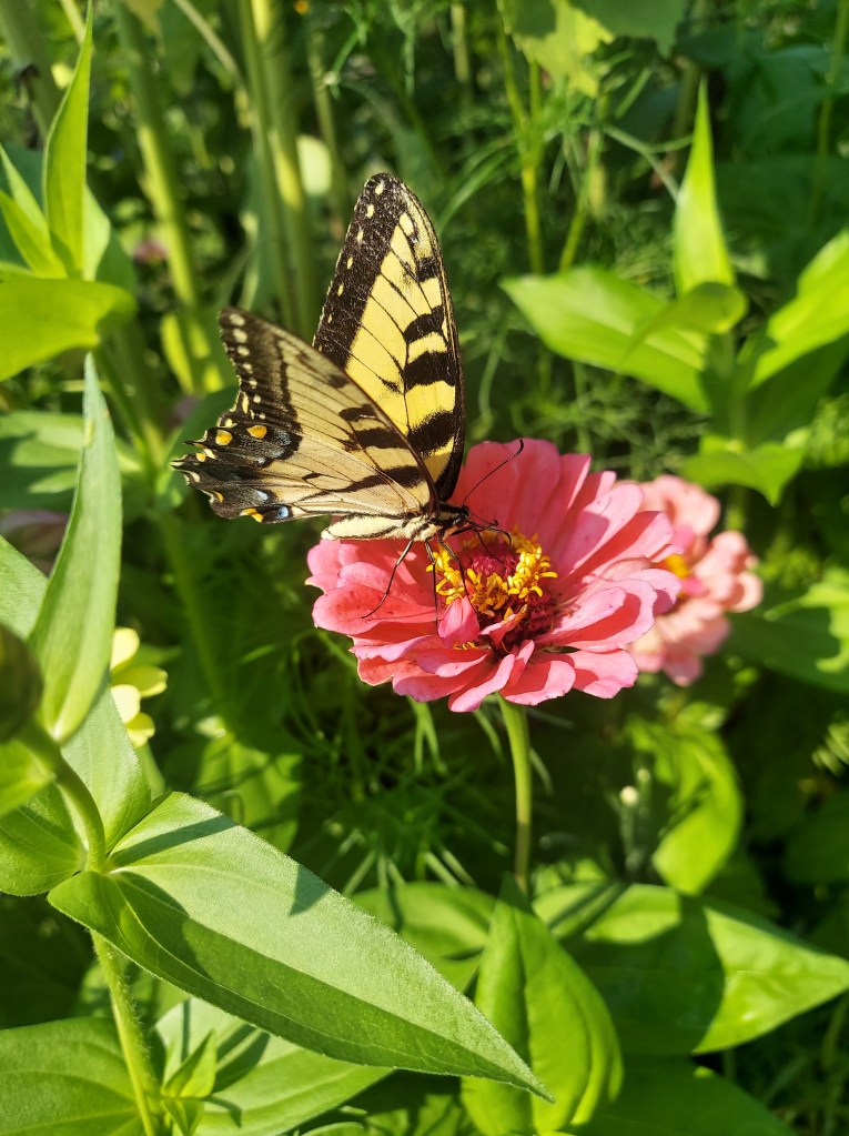 Ms. Faux and I have a garden. It is not very big, but it is packed with variety. This year’s flower garden is starting to leave us, so I’m going to start to dig into some older garden photos. Here is a thirsty swallowtail butterfly hanging out on a zinnia. I’ve also included an alt-country classic.