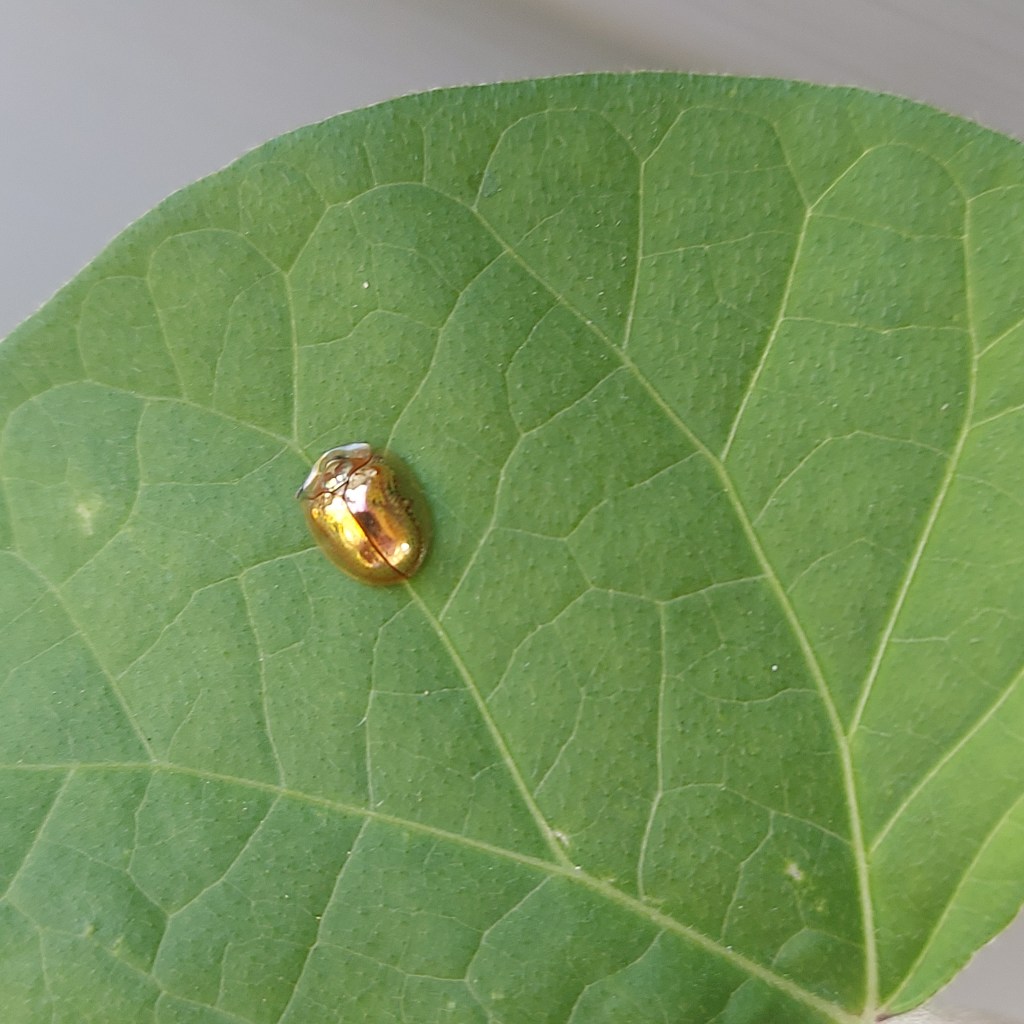 Ms. Faux and I have a garden. It is not very big, but it is packed with variety. I found this little one shining bright gold on a leaf. It is smaller than the fingernail on your pinky – nature is amazing. I’ve also included a song that is too on-the-nose.