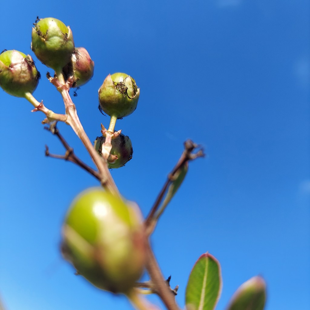 This photo completes a trilogy of the life of this crepe myrtle’s flowers through the summer. This is the seed produced from the flower.
