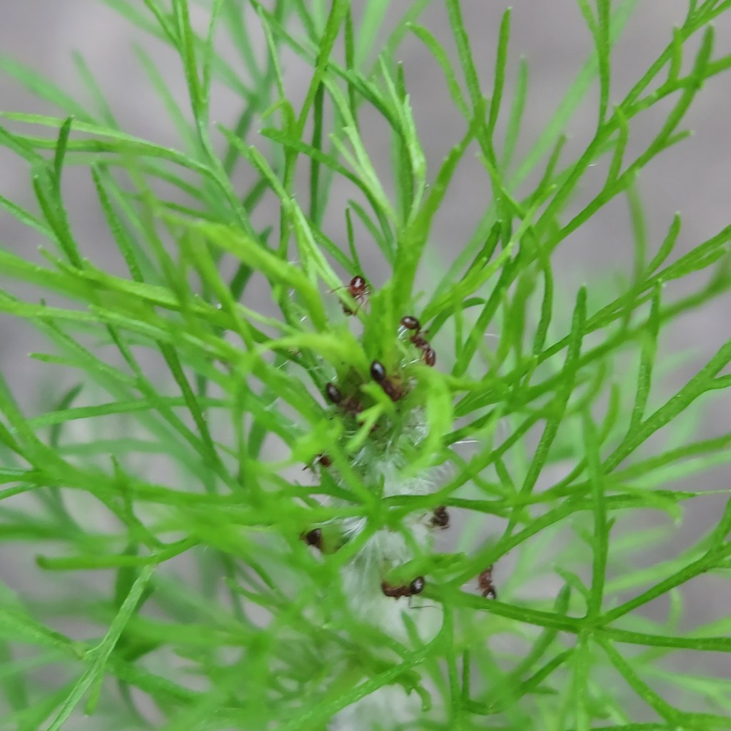 Finding beauty in the often overlooked, this week’s photos will focus on a recent walk I took through a parking lot. Here are some ants who are thriving in a tiny weed growing out of a crack in the pavement. I believe that the white fuzz is a sugary extraction produced by a mealybug that has taken refuge in the weed. Ants and mealybugs are friends. I’ve also included a song about friendship.