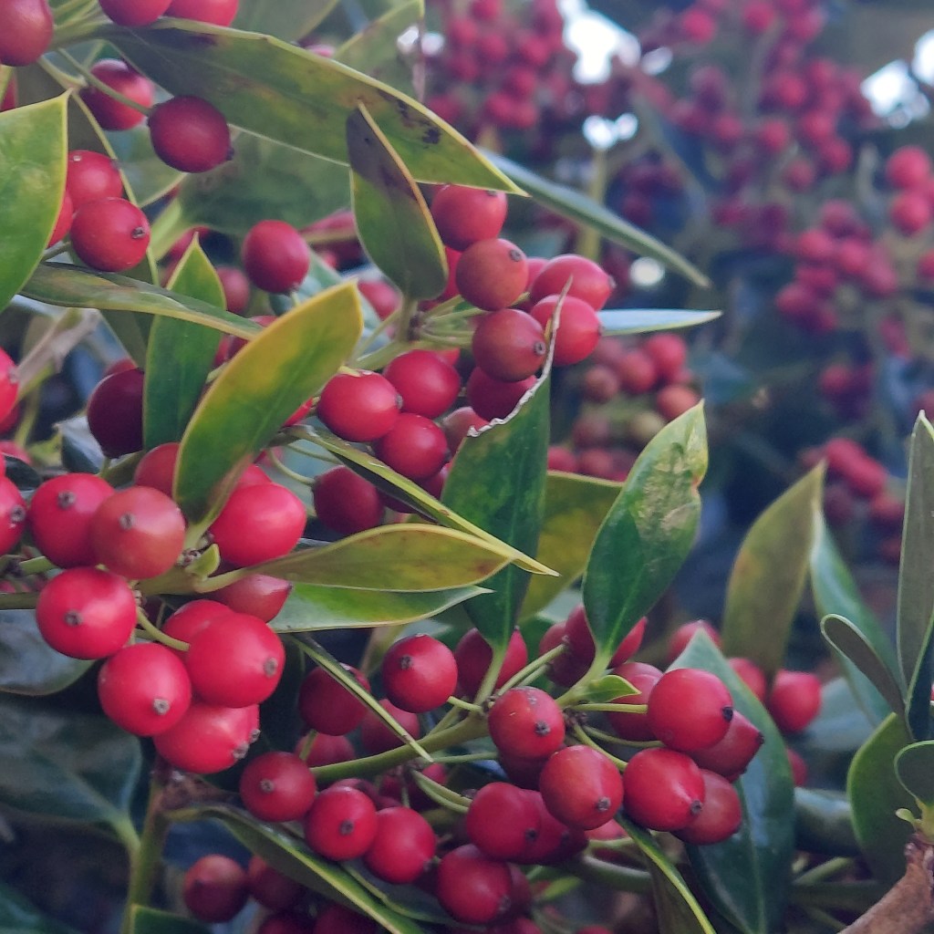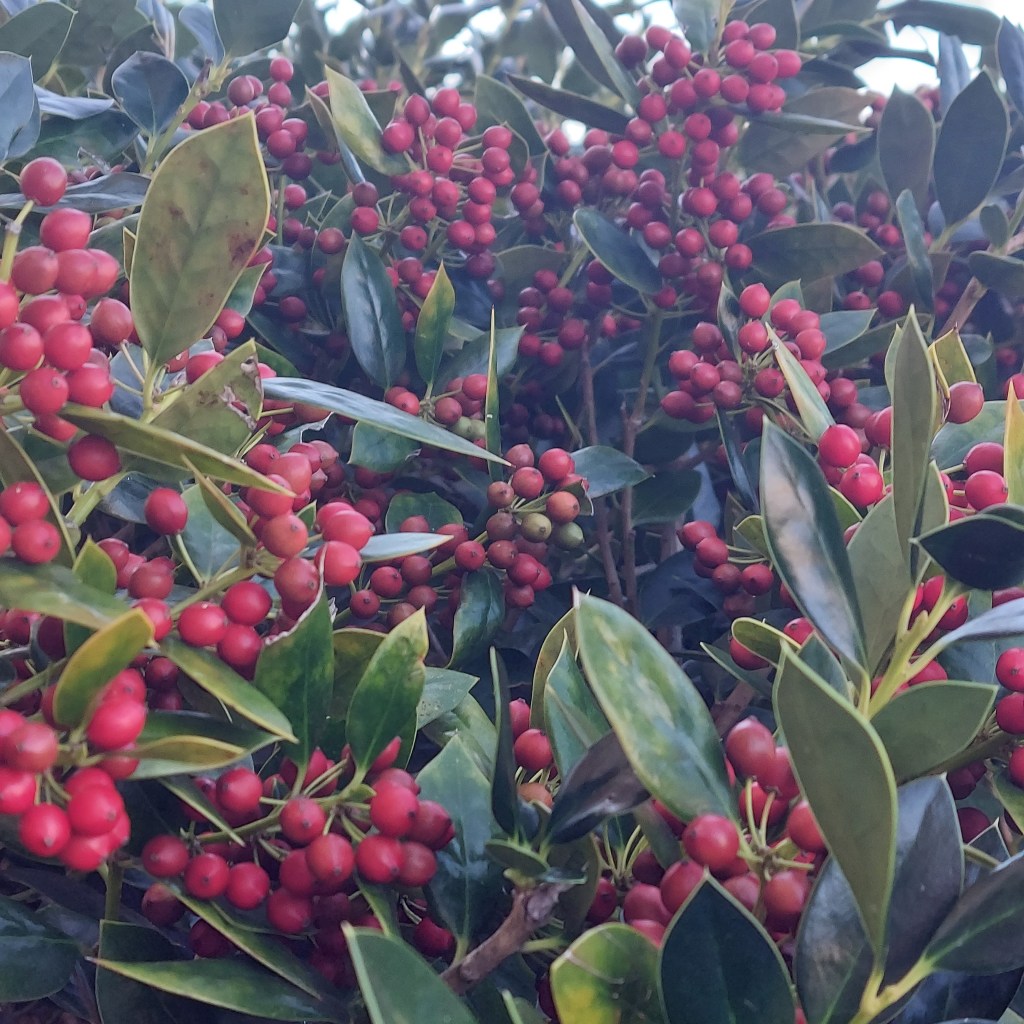 Our holly bushes have ripened into a sea of red berries. I’ve also included a song by The Osmonds.